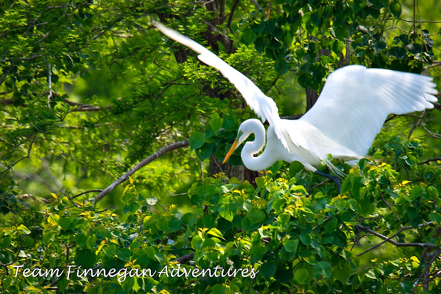 A Great Egret leaving the rookery