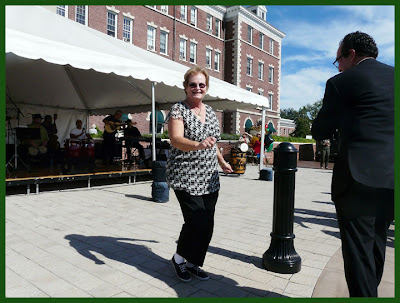 Many loopers recommend a meal at the Culinary Institute outside Hyde Park. It was hard to get a reservation, but persistence was rewarded. You have a choice of several resturants. We chose to eat at the American Bounty. The meal was very tasty indeed. We were disappointed in the service however. We were told that each student spends the last portion of culinary training working as a server. The guy we had as our server was not getting this part of his education. To read more about the Culinary Institute, click here. After our lunch, we went outdoors to find a multicultural festival, complete with band. You can’t keep Sandy off the dance floor.