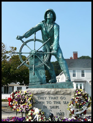 This familiar statue, “Man at the Wheel” was erected in a park on the Gloucester Harbor in 1926 to memorialize the thousands of Gloucester fishermen who never returned from the sea.