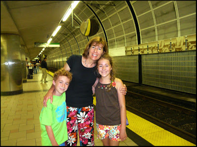 Daria, Summer and Baxter waitng for the T train to arrive.