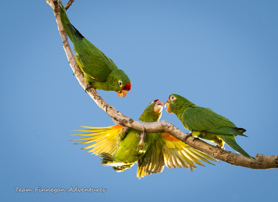 After dinner, we were returning to our rooms and discovered thousands of parakeets covering the trees in the hotel courtyard. It was fun to be surrounded by so many extremely sociable, noisy and enthusiastic birds.